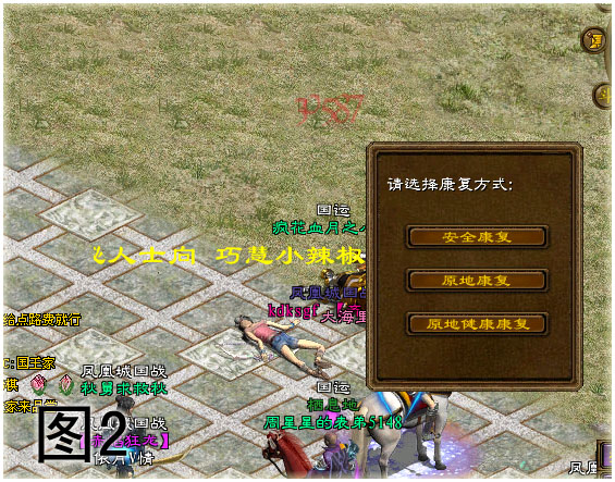 4月8号20点15分凤凰国战正式开始,齐国有一到两名极品小号出现在楚国凤凰城的城南禁卫队长处,但是还没有对禁卫队长造成实际伤害,齐国的小号便被等候多时的楚国以及楚盟的小号击倒在地,但齐国小号不停的原地复活之后,又开始攻击禁卫队长,让楚国小号倍感难缠,就这样,双方人员在“打架-复活-挂掉-复活”的拉锯战中打到了8点半左右(如图1)