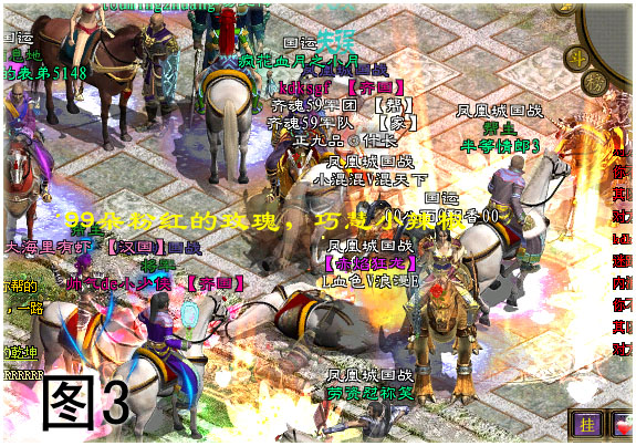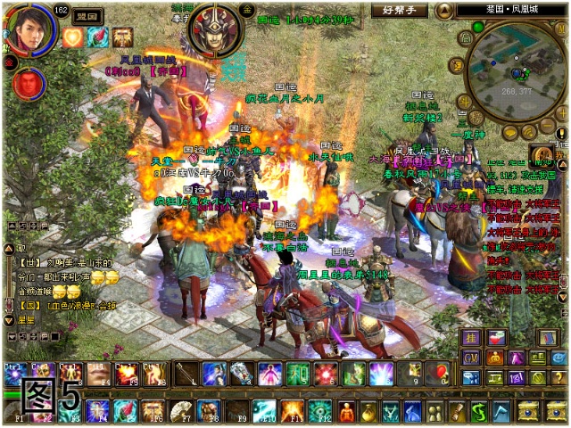 就这样20点50分左右,凤凰城的3个禁卫队长均被杀光,大将军王失去了系统的保护!决战的时刻到来了,只见齐国的一个小号负责PK杀人,吸引着楚国小号的注意,而攻击较弱的齐国小号则全力攻击大将军王,此时此刻,四周围了一些楚国大号,他们虽然有心杀敌,但无法逾越系统的规定,只能无可奈何的释放着每一击都是“失误”的技能(如图5)