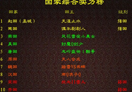 这2个世界第1和第2虽然等级上看不出什么,但是就看那多出的20W血就能够说明一切``,在全区近20个12星套中,就有10多个在赵国,赵没理由不得到了他们所要的一切:总舵,圣城,以及一切的大小BOSS,部分国家的官员还尚为屈服于赵,但是在即将到来的一次次战争中,他们的态度会改变吗?答案我想是肯定的。就像舌战区的楚一样,赵已经控制住了合区带来的混乱,他们无疑是这场没有硝烟的战争的最后赢家。