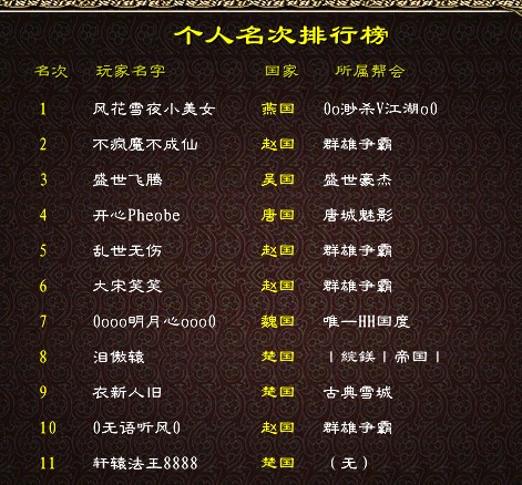 在世界排名前10的玩家里就有4个是赵国的,而且是清一色的12星装备,在来比较下燕和赵的实力,不用说过多废话。