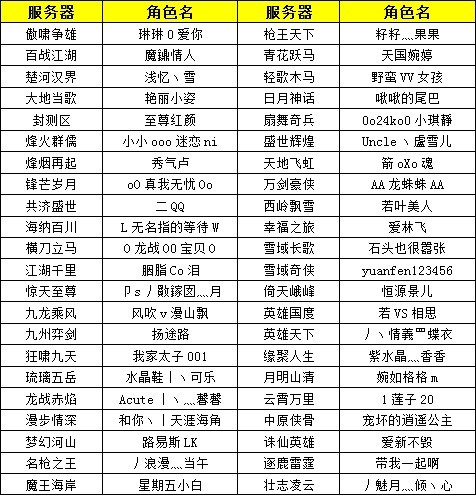 5、名门星光、七剑同盟、天马行空、侠肝义胆、横扫千军、浴血沙场、傲视天地、逆转乾坤服务区不参加本次活动。