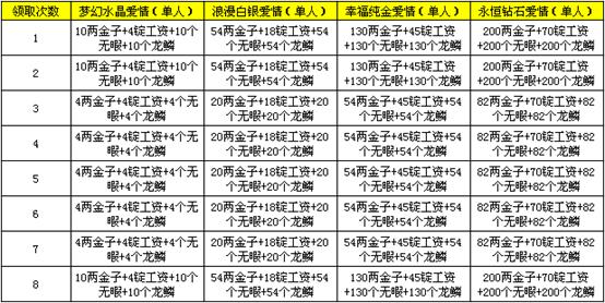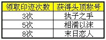 根据玩家领取“爱情印迹”的次数,还可额外获得特殊称号(签署双方还保持着夫妻关系),具体如下: