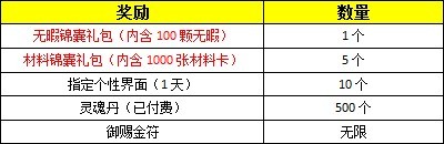 七、神奇免单卡活动结束。本次版本更新后,“日常转盘”、“家族转盘”、“活跃度聚宝盆”、“家族中立区?皇城高级BOSS”的将不再获得神奇免单卡,奖励恢复至原来设定。