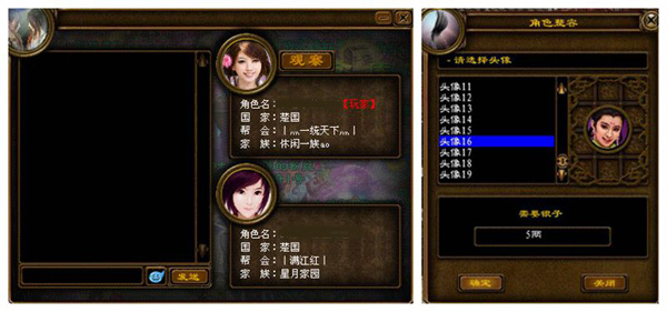 在基因决定命运的情况下,长相完全随机,于是长的过于随机的娃也只能长叹一声“我是心灵美”。游戏里每位玩家在创建角色时就能选择对应性别的头像,在王城NPC“易容师”处也可以自由更换头像,进入游戏后还有着各种头像道具卡可供选择。玩家头像卡种类非常多,其中最受女性玩家欢迎的头像卡主要有“晓诗”、“紫嫣”、“伊人”和自定义头像卡,这一类头像卡基本全是美女,在和他人对话时会出现在醒目的位置。自定义头像卡一般是参与官方活动,如《征途》选美大赛各区冠军会给予奖励,其它稀有头像卡可以通过挖藏宝图获得,当然最简单的方式是从其它玩家手中换购。