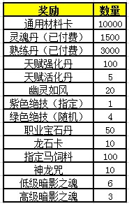 天赋活化丹、龙石卡、紫色绝技(指定)、高级暗影之魂、无字天书、神龙之露、圣魔晶石、元气丹等新增珍稀大奖每天上线抽!